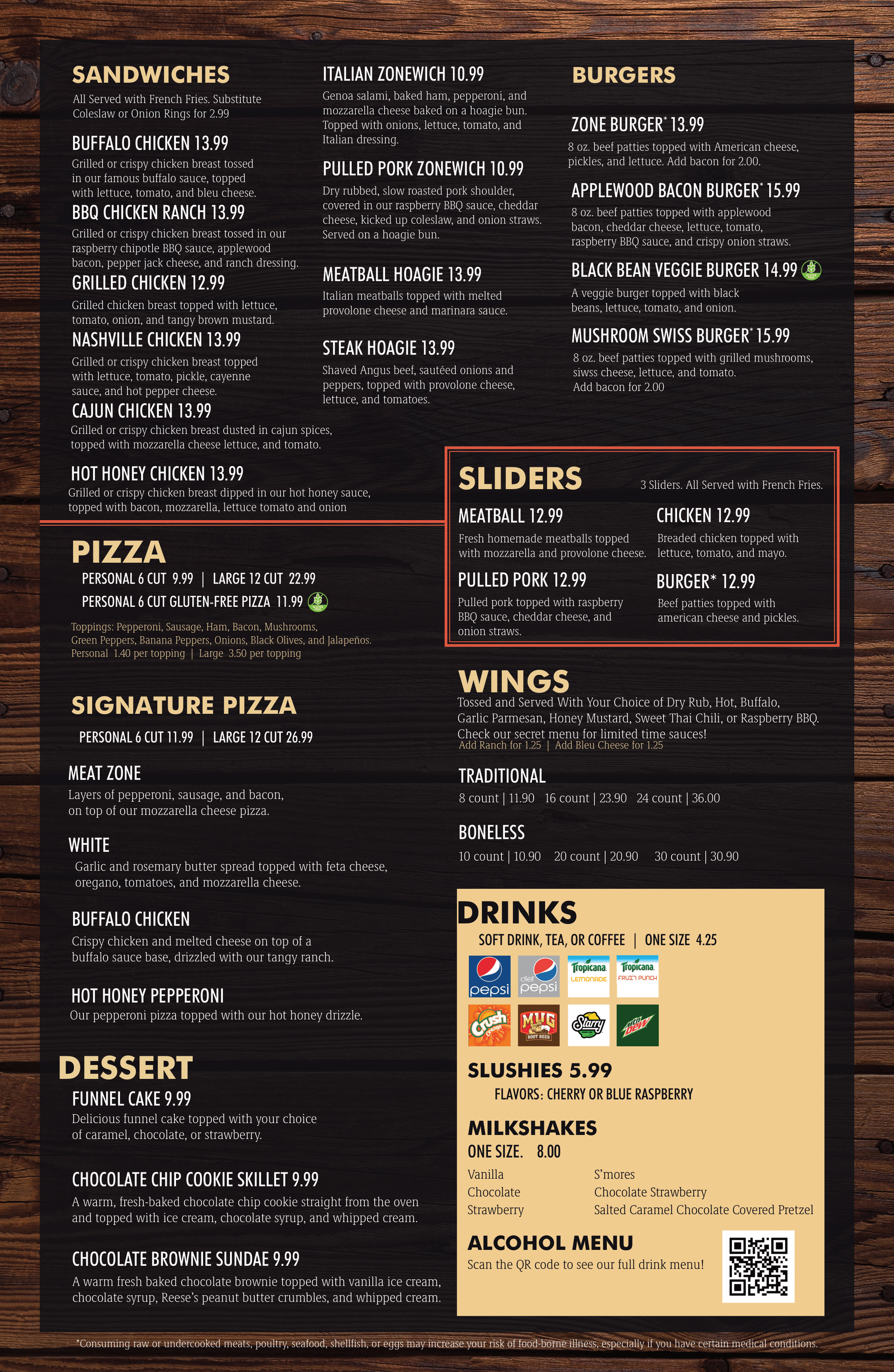 Our Rail House Restaurant is open Wednesday through Sunday for lunch at 11:00 AM, we offer all of our classics, such as freshly baked pizza and sandwiches, as well as some tasty new dishes, like our chef-inspired Applewood Bacon Burger and Loaded Zone Fries. Whether you're looking for a snack while you bowl, a refreshing drink for the game room, or you're ready for dinner- we've got you covered!